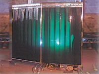 A melhor proteção em todas as instalações industriais. Composto de lâminas de PVC Verde especial, lavável e antichama, e antiaderente a respingos de solda que evita os maleficios causados pelos raios ultravioleta.