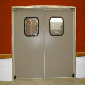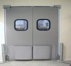 Projetadas para serem usadas em serviços de tráfego leve de carrinhos e pessoas, utiliza pequenos roletes ao invéz de molas e o seu retorno é por gravidade. De fácil instalação permite uma abertura superior até 120º em ambas as direções. O sistema de dobradiças é contituído em chapa galvanizada, sendo que o apoio inferior que chamamos de pé será em material especial, visor em acrílico com 3mm de espessura.